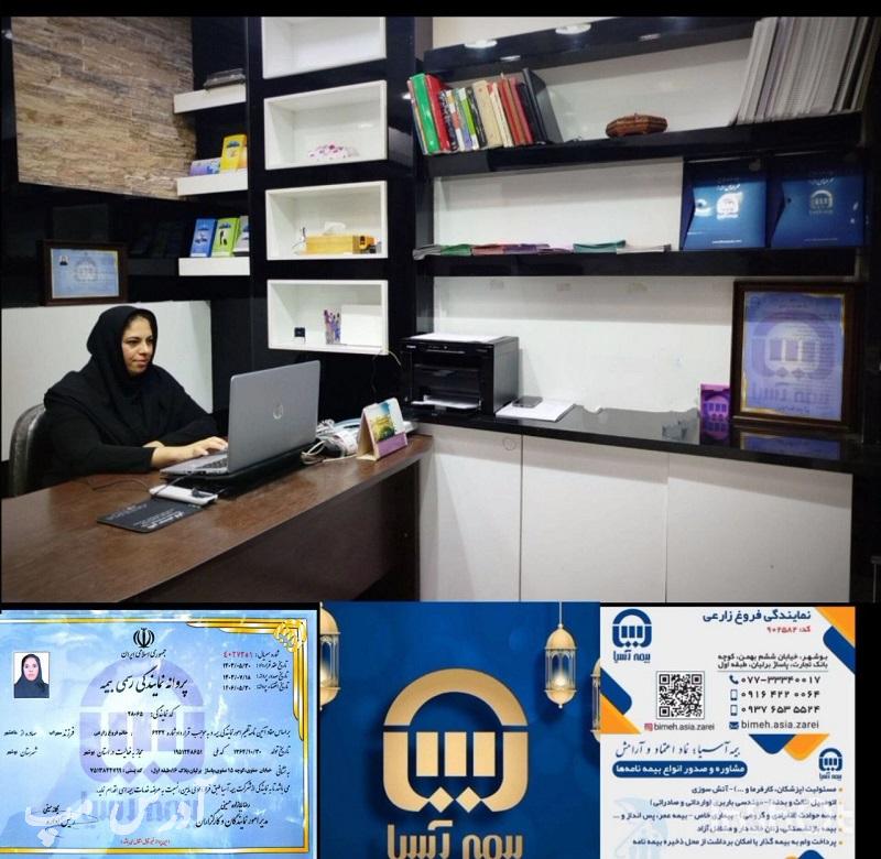 خدمت گذارشما،فروغ زارعی نماینده بیمه آسیا،  در استان بوشهر،