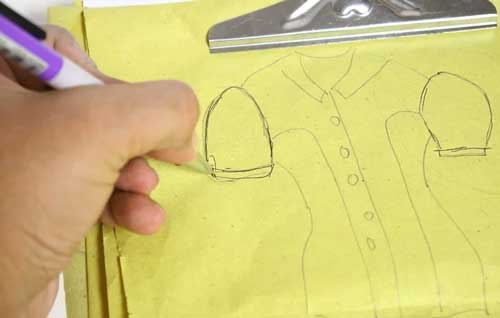- خطی موازی با خط لبه بکشید که این نقاط را به هم وصل کند (خط دوخت زیر بغل).