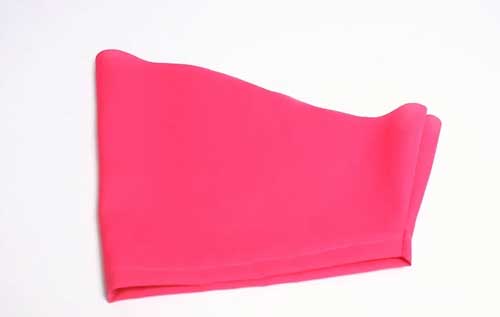 مرحله ۸: هر قطعه پارچه را از وسط تا بزنید، طوری که قسمت رنگی و زیبای آن به سمت داخل قرار گیرد.