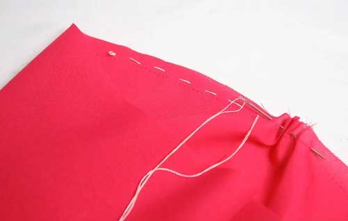 مرحله ۱۱: با استفاده از سوزن و یک نخ بلند، لبه دایرهای شکل سرآستین را که برای ایجاد چین طراحی شده است، بدوزید.
