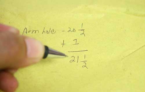 برای بخشهایی که دوخته میشوند و لبه کار، ۱ اینچ (معادل ۲.۵۴ سانتیمتر) به اندازه دور پارچه اضافه کنید. همچنین ۱.۵ اینچ (معادل ۳.۸ سانتیمتر) هم به اندازه آستین بیفزایید.