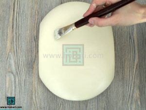 با استفاده از یک قلم مو، تمام سطح پشت طرح را به طور کامل با چسب آغشته میکنیم.