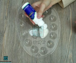 چسب مخصوص انتقال طرح را در یک ظرف مناسب میریزیم.