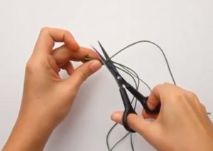 یکی از نخها را با قیچی جدا کنید. سپس سه نخ باقیمانده را به هم ببافید.