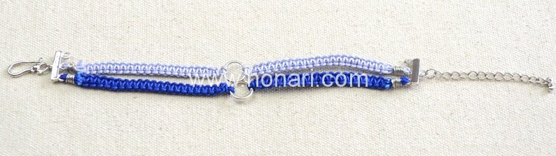 پس از انجام همه مراحل قبلی، دستبند مکرومه شما به این شکل درآمده و آماده استفاده است.