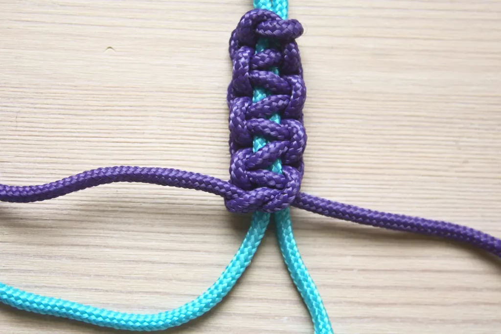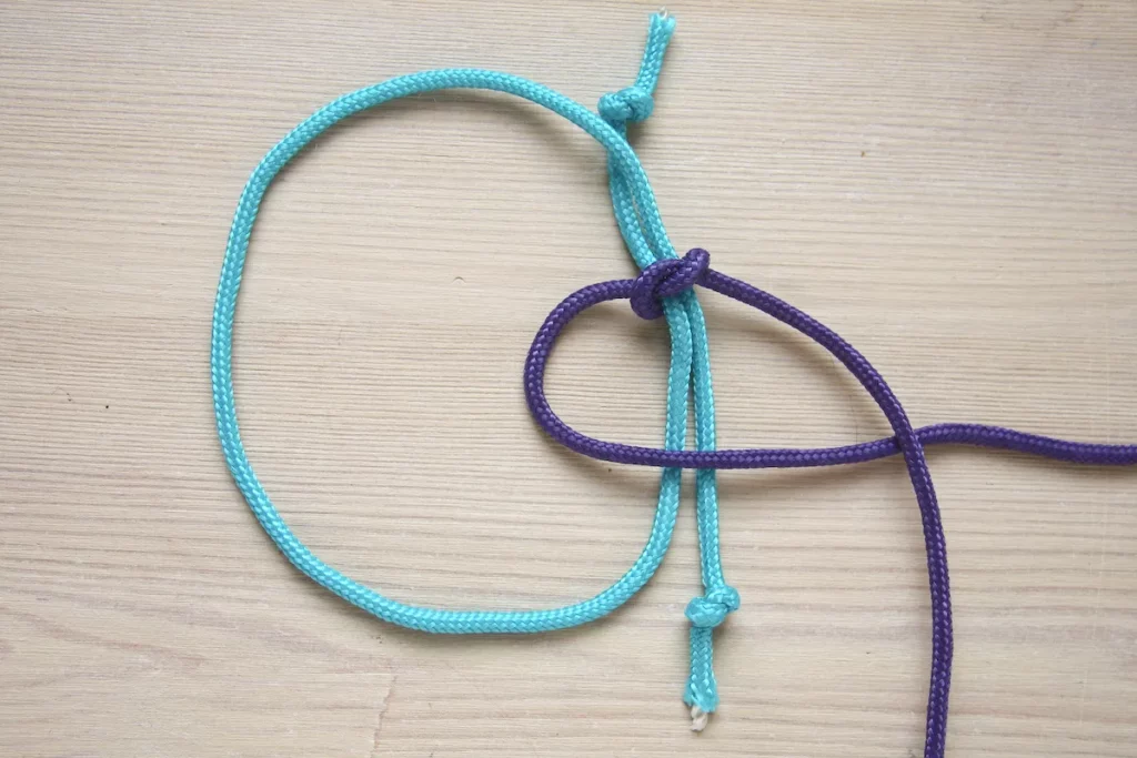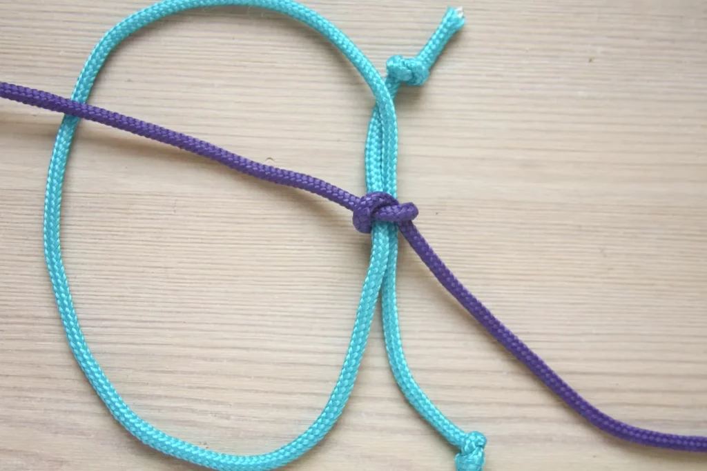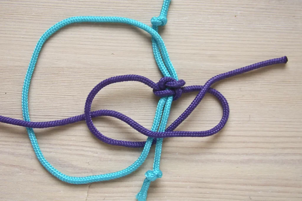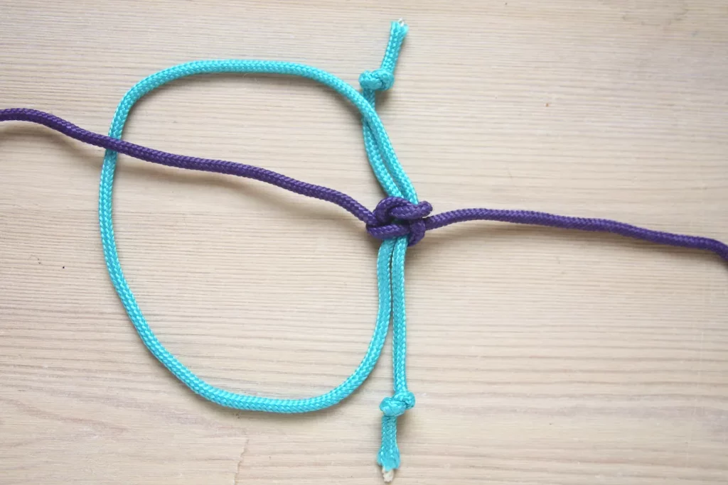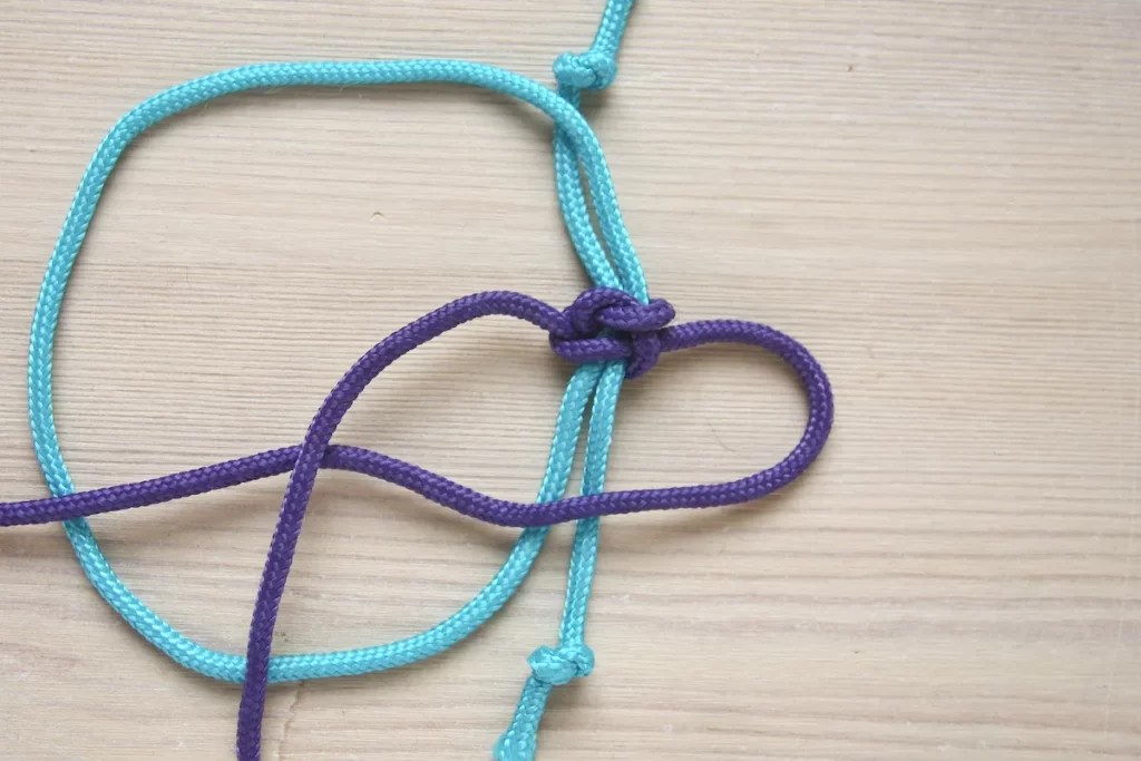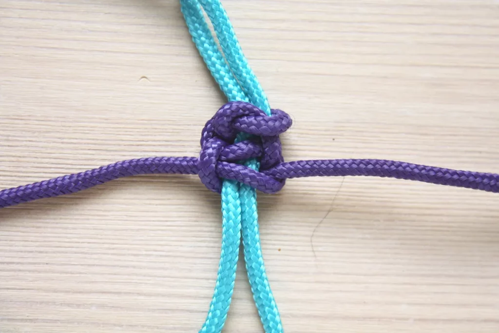 در مرحله بعد، کار گره زدن را با به کار بردن قسمت سمت چپ طناب ادامه دهید.
