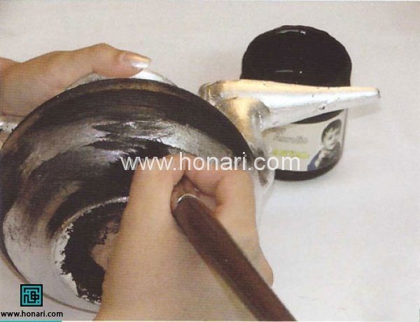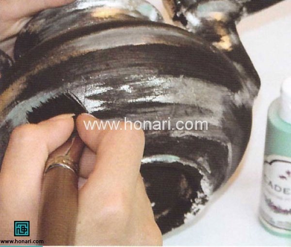 در این قسمت میخواهیم together روش کهنهکاری با ورق نقره روی یک ظرف سفالی را یاد بگیریم. ما در این آموزش از رنگ مشکی استفاده کردهایم، اما شما میتوانید با توجه به سلیقه خود از رنگهای دیگر هم استفاده کنید. پس بیایید با هم شروع کنیم!