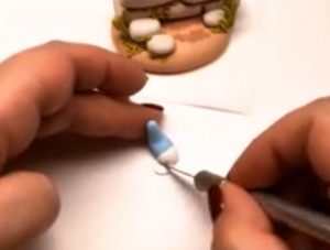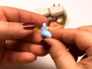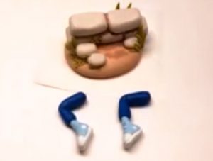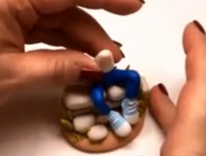 با استفاده از همان خمیر، یک قطعه بیضی شکل درست کنید و دو پا به آن اضافه کنید. سپس با ابزار مخصوص، انتهای پاها را به قسمت بالایی وصل کنید و محکم نمایید.
