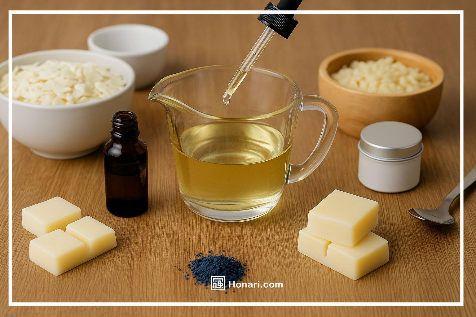 اگر از اسانس به اندازه ۱۰ درصد استفاده میکنید، لازم است مقدار موم پایه را کمتر در نظر بگیرید.