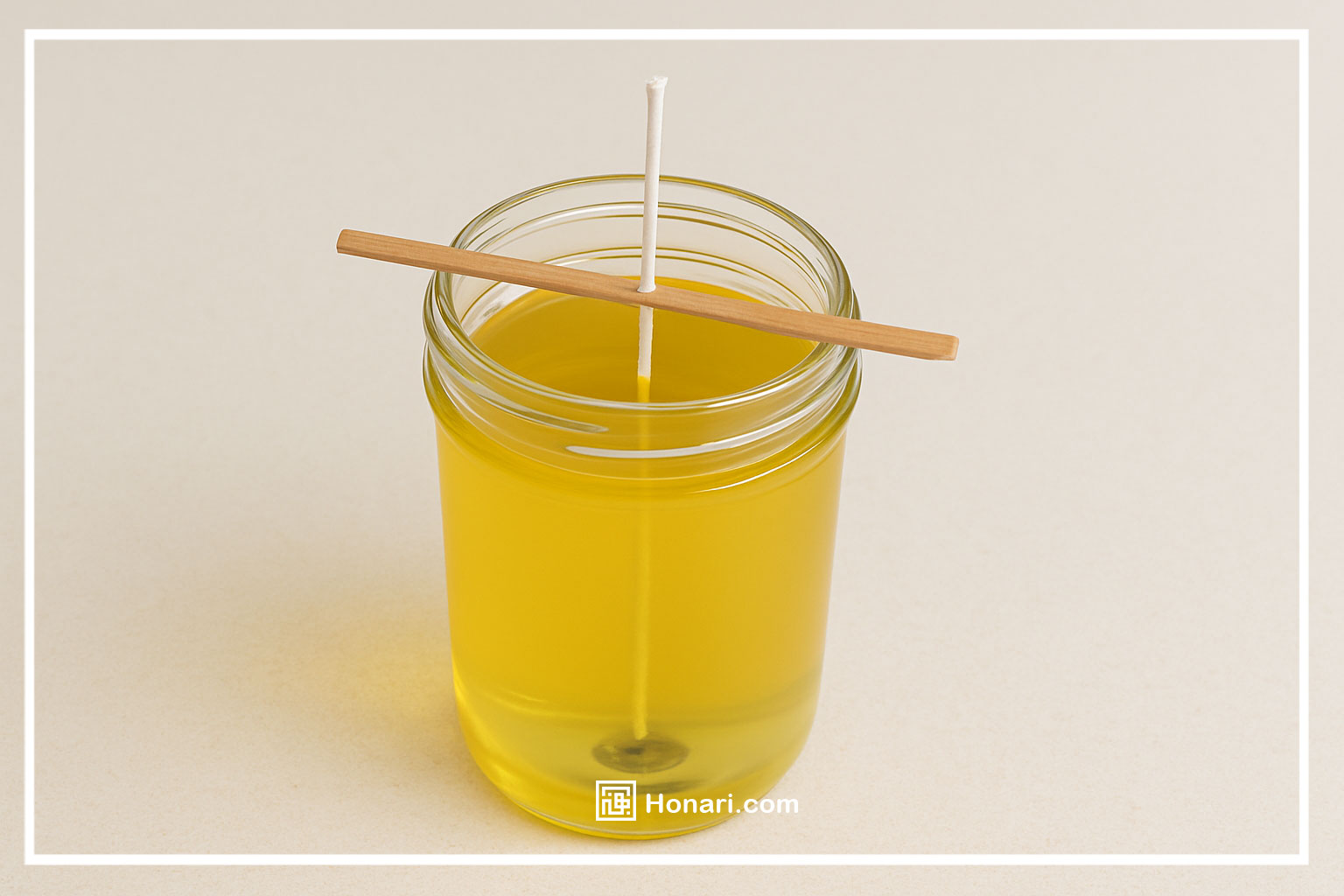**یک چوب کوچک (مثل چوب بستنی) برای نگهداشتن فیتیله در مرکز ظرف**