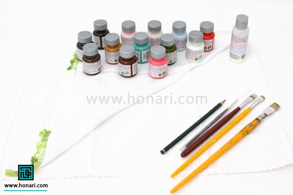 مواد مورد نیازی که امروز برای آموزش نقاشی روی پارچه احتیاج داریم: