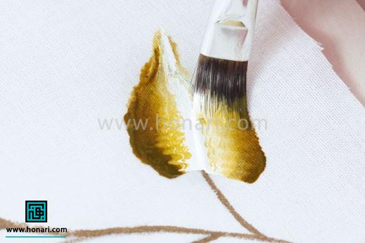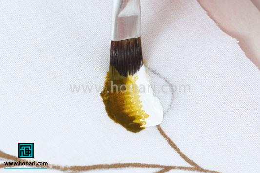 هنگام نقاشی روی پارچه، باید قلم مو را طوری قرار دهید که قسمت آغشته به سفید آن به سمت میانهٔ برگ باشد