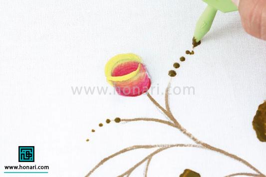 این کار باعث میشود خطوط طرح، کمرنگتر به نظر برسند و در نهایت، نقاشی روی پارچه ظاهری طبیعیتر و نرمتر پیدا کند.