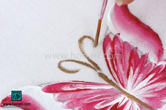 این بار، طرحی که برای نقاشی روی پارچه انتخاب کردهایم، گل و پروانه است. این طرح نسبت به آموزش قبلی کاملاً متفاوت و ویژه است.