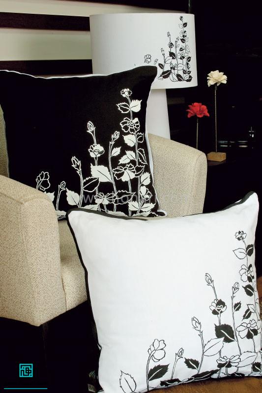نکته: برای هماهنگی رنگهای کوسنها، از پارچههای سیاه و سفید کمک میگیریم و رنگآمیزی هر کدام را دقیقاً برعکس دیگری انجام میدهیم.