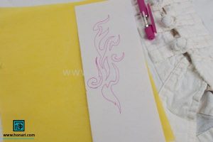 طرح را با کمک کاغذ کاربن روی پیراهن منتقل کنید.
