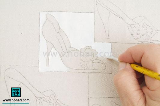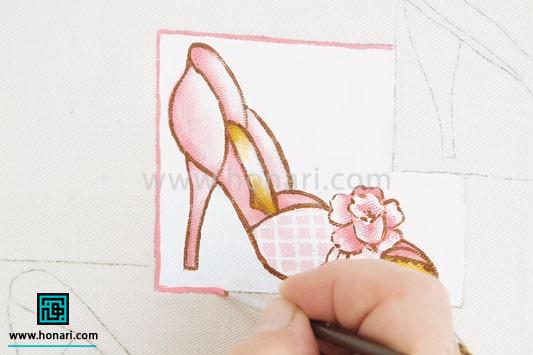 آموزش نقاشی روی کیف با طرح کفش پاشنه بلند