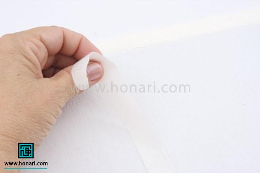 سپس این برچسبها را در جایهای مختلف روی پارچه میچسبانیم.