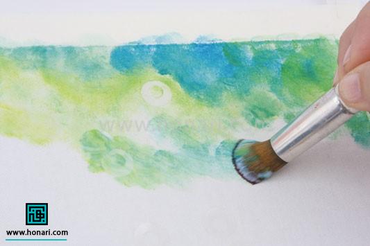 یک نکته مهم: اگر رنگها کاملاً با هم ترکیب نشدند، نگران نباشید. این حالت، بخشی از زیبایی و جذابیت نقاشی روی پارچه محسوب میشود.