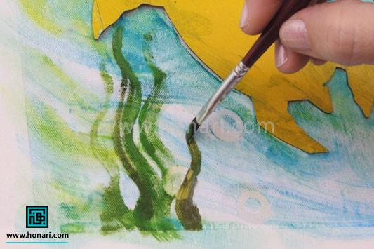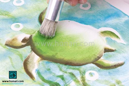 در این آموزش میخواهیم یک لاکپشت درون آب را روی پارچه نقاشی کنیم.