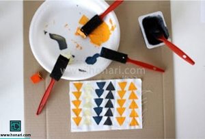 آموزش چاپ طرح هندسی روی پارچه با استفاده از مقوا