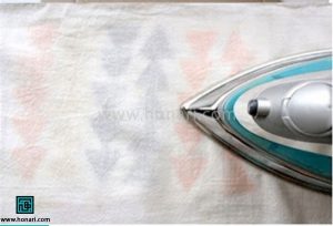 با حرارت کم لباس را اتو میکنیم. یادتان باشد اگر از یک پارچه نازک بین اتو و لباس استفاده نکنید، امکان دارد رنگ لباس آسیب ببیند.