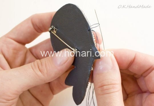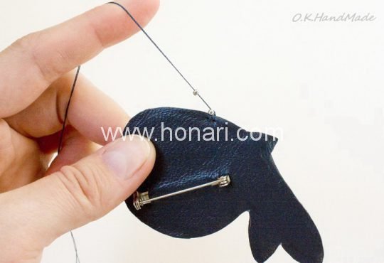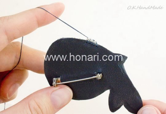 بعد از آن، چشم نهنگ را با نخ مشکی در جای مناسبش بدوزید.