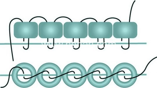 به این ترتیب، نخ از داخل هر مهره دو بار عبور میکند که باعث نظم بیشتر، یکدستی و همچنین استحکام بهتر کار میشود.