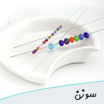 وقتی سوزن روی کار قرار گرفت، یک دانه منجوق را داخل سوزن کنید و با کوک بعدی آن را در جای خود محکم کنید.