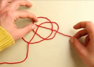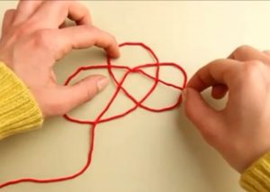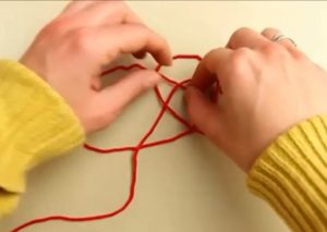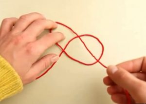 نخ را از روی حلقه رد کنید، سپس از زیر نخ دیگر عبور دهید.