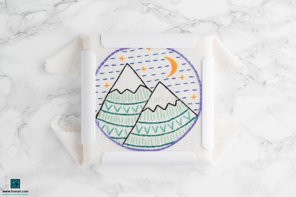 من دوست دارم از یک کارگاه گلدوزی استفاده کنم که از طرحی که میخواهم روی آن کار کنم، کمی بزرگتر باشد. این طوری میتوانم بدون اینکه نیاز باشد پارچه را جابهجا کنم یا وضعیت کارگاه را تغییر دهم، به راحتی بدوزم و کوک بزنم.