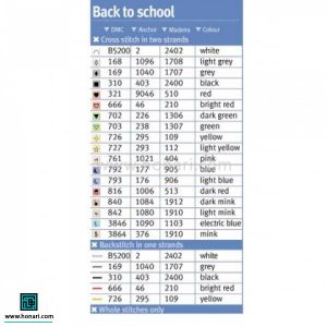 در هر نقشه، رنگهای مختلف با استفاده از حروف انگلیسی یا نمادهای خاص از هم جدا شدهاند. در قسمت پایین نقشه نیز یک راهنما وجود دارد که در آن، هر رنگ یا علامت به شماره نخ مربوط به خودش وصل شده است. این راهنما دقیقاً مانند تصویری است که در ادامه میبینید.