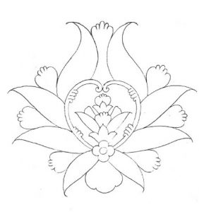 طرحی از کاشیهای شکسته که نقش یک گل را نشان میدهد