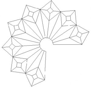 در این طرح، قطعات کاشی به گونهای برش داده شده و در کنار یکدیگر قرار گرفتهاند که یک شکل دایرهای یا ستارهای مرکزی به نام “شمسه” را میسازند. این قطعات مانند پازل به هم متصل میشوند و یک الگوی مرکزی کامل و زیبا پدید میآورند که معمولاً در وسط سقف یا دیوار دیده میشود.