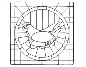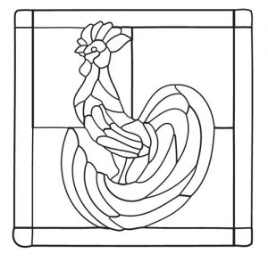 در این طرح نیز از تکههای ریز و درشت کاشی برای ساختن نقش یک خروس استفاده میشود. با چیدن این قطعات در کنار هم، تصویر خروس با رنگهای زنده و چشمنواز پدید میآید که نشاندهنده بیداری و روشنایی است.