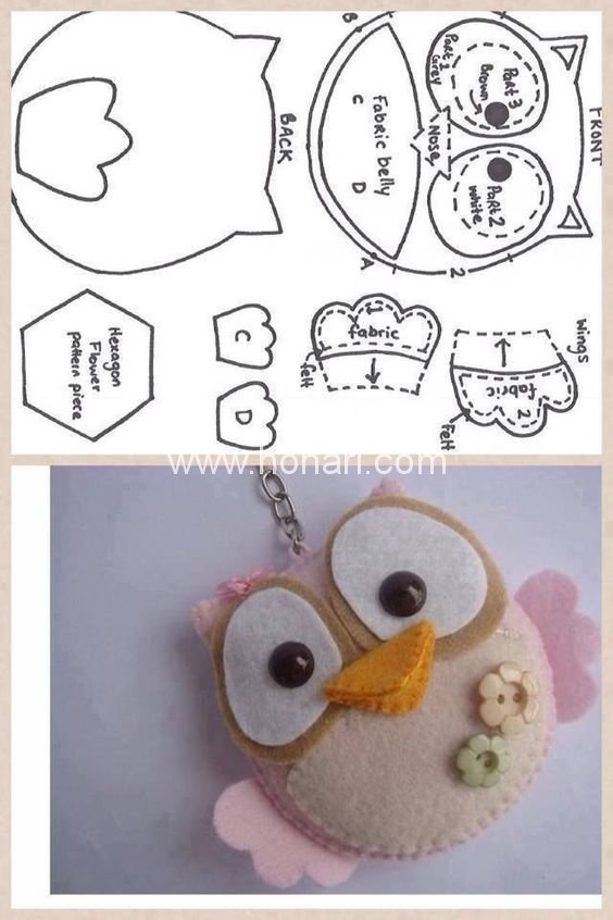 ۸. در پایان، یک روبان به آن وصل کنید تا بتوانید جغد نمدی را آویزان کنید.