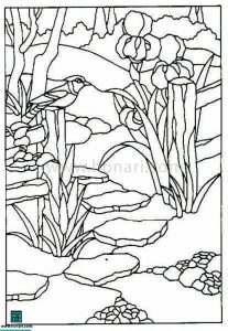 طرح شیشهرنگاری از یک پرنده و منظره طبیعی