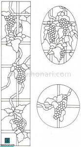 این طرح با الهام از خوشههای انگور و برگهای پیچیده آن طراحی شده است. در این اثر، از رنگهای گرم و زنده مانند سبز، آبی و بنفش استفاده میشود تا زیبایی و طراوت این میوه را به نمایش بگذارد. این طرح معمولاً برای تزئین پنجرهها، دربها و فضای داخلی خانه به کار میرود و با تابش نور، جلوهای چشمنواز و رنگارنگ ایجاد میکند.