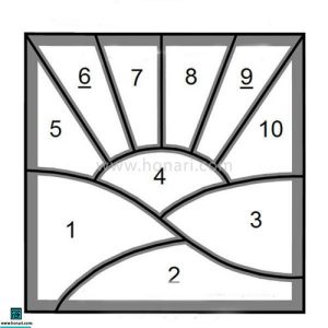 این طرح از شکلهای هندسی ساده مانند مربع، مثلث و دایره درست شده است. این شکلها به طور منظم در کنار هم قرار گرفتهاند و یک نقشه زیبا و چشمنواز ایجاد کردهاند. رنگهای به کار رفته در این طرح، زنده و درخشان هستند و وقتی نور از پشت آنها بتابد، جلوهای تماشایی به وجود میآورند. این طرح برای تزیین پنجرهها، درهای شیشهای و یا به عنوان یک اثر هنری مستقل بسیار مناسب است.