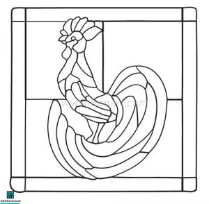این طرح، تصویری از یک خروس را به نمایش میگذارد. خروس، پرندهای است که اغلب به عنوان نماد بیداری، روشنایی و شروع یک روز جدید شناخته میشود. در این اثر، جزئیات بدن خروس مانند پرهای رنگارنگ، تاج قرمز و چشمان درخشان با دقت و با استفاده از شیشههای رنگی مختلف طراحی شده است. این طرح پرانرژی و زنده است و معمولاً برای تزیین پنجرهها، درها و یا به عنوان یک اثر هنری مستقل استفاده میشود.