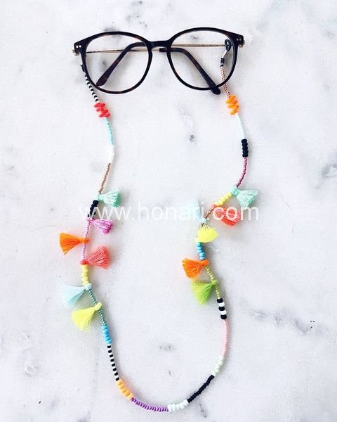 میتوانید با به هم پیوند دادن زنجیرهای استیل، سنگهای تزئینی و مهرههای رنگارنگ، بندهای عینک بسیار زیبا و شیکی برای خودتان درست کنید.