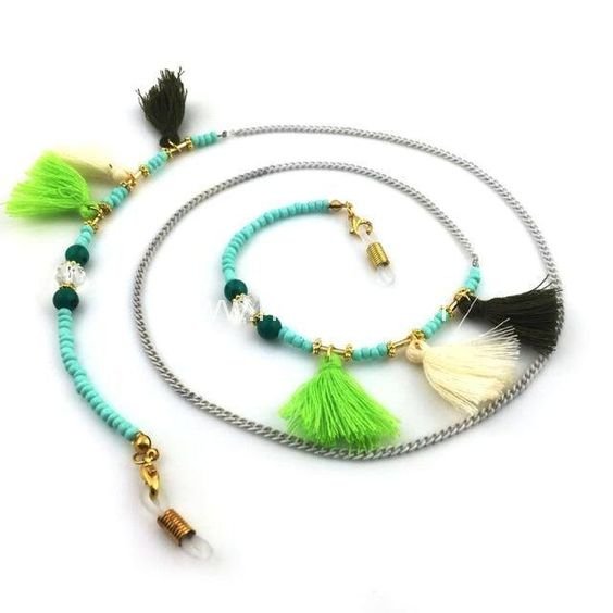 میتوانید با به هم پیوند دادن زنجیرهای استیل، سنگهای تزئینی و مهرههای رنگارنگ، بندهای عینک بسیار زیبا و شیکی برای خودتان درست کنید.