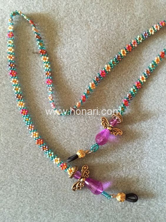 در اینجا چند نمونه از بندهای عینک تزئین شده با منجوق را مشاهده میکنید که طراحی آنها هم بسیار ساده و هم فوقالعاده زیبا است.