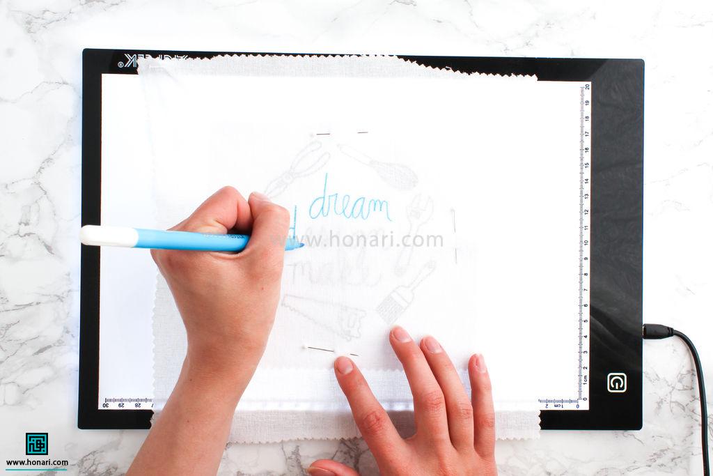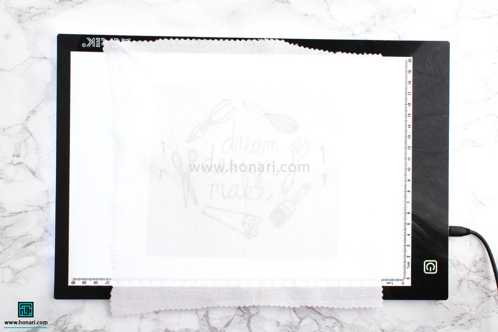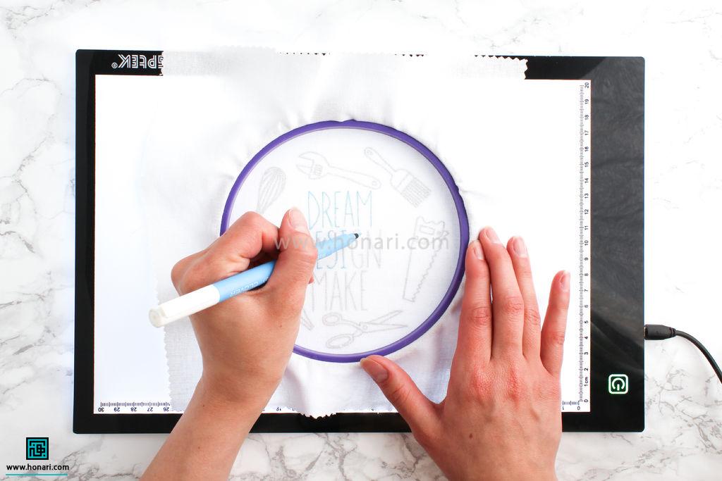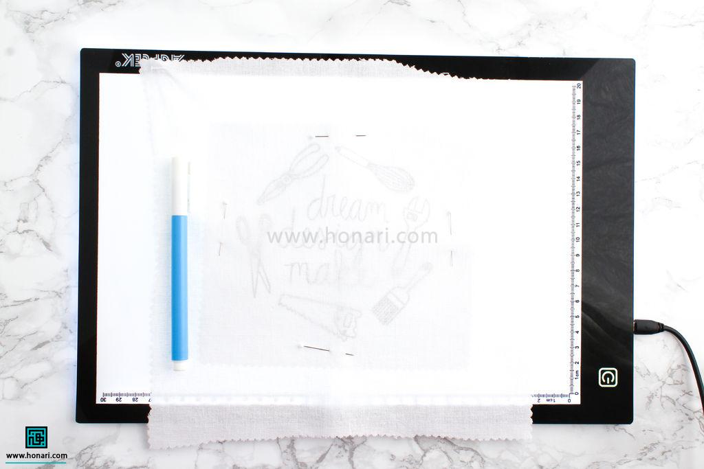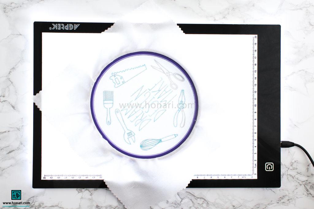 اگر هم از میز نور یا صفحه تبلت استفاده می‌کنید، کافیست کاغذ الگو را روی آن قرار دهید.