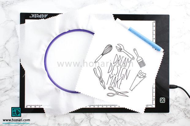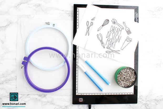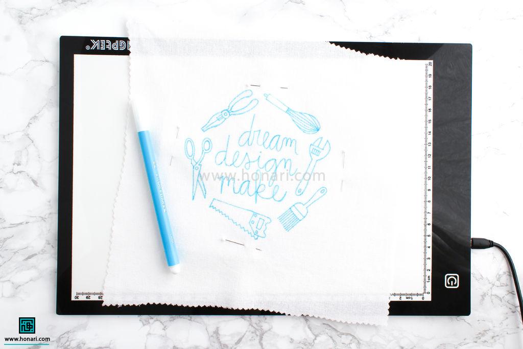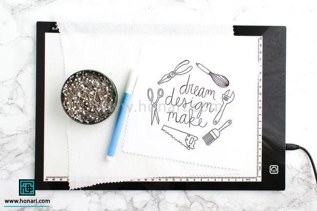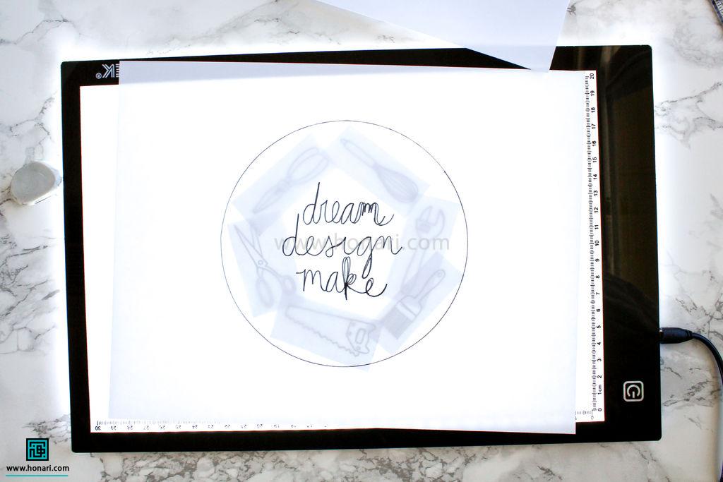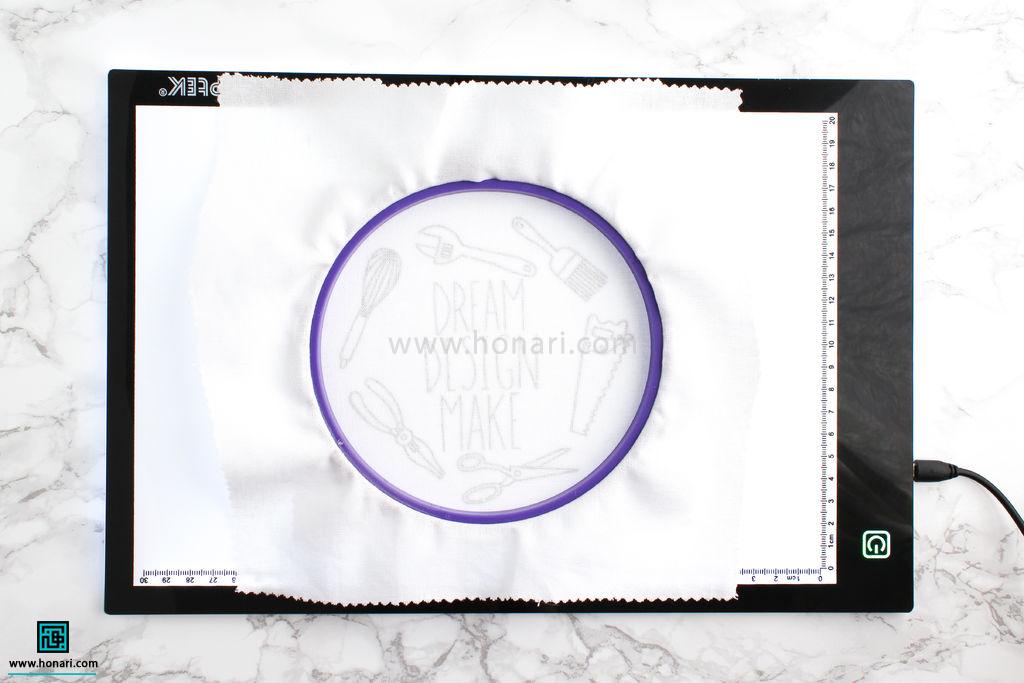 اگر هم از میز نور یا صفحه تبلت استفاده می‌کنید، کافیست کاغذ الگو را روی آن قرار دهید.