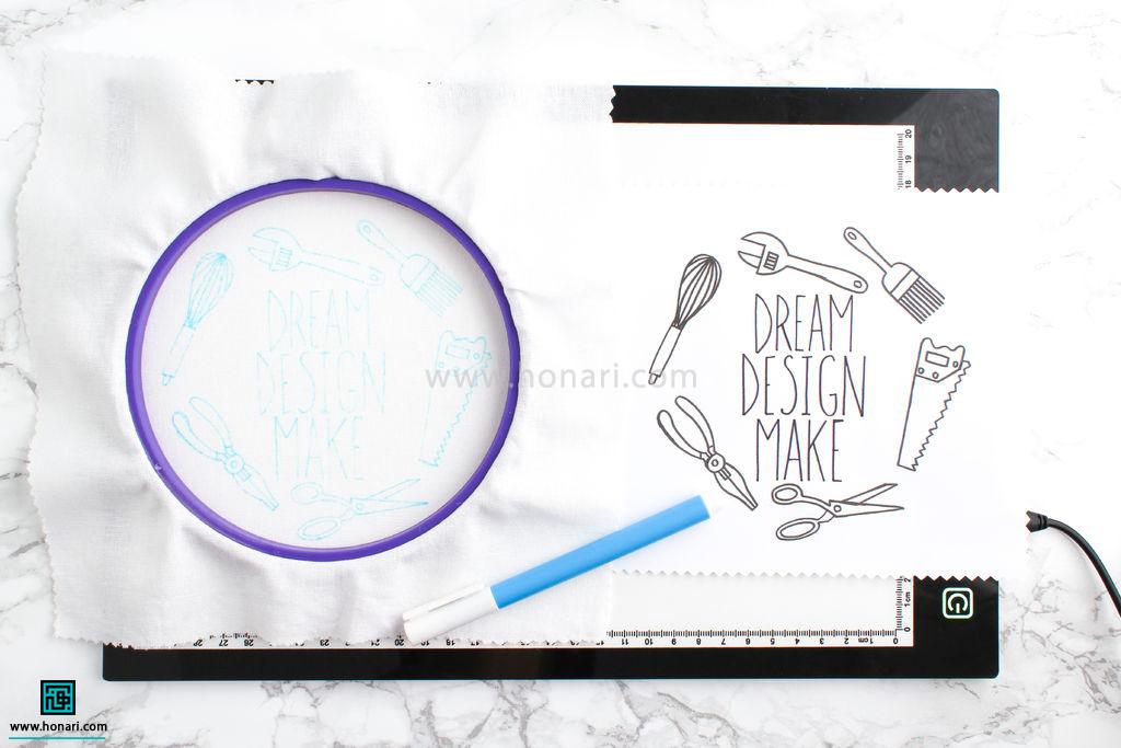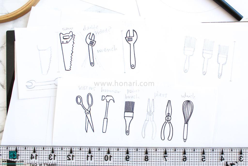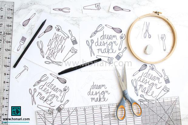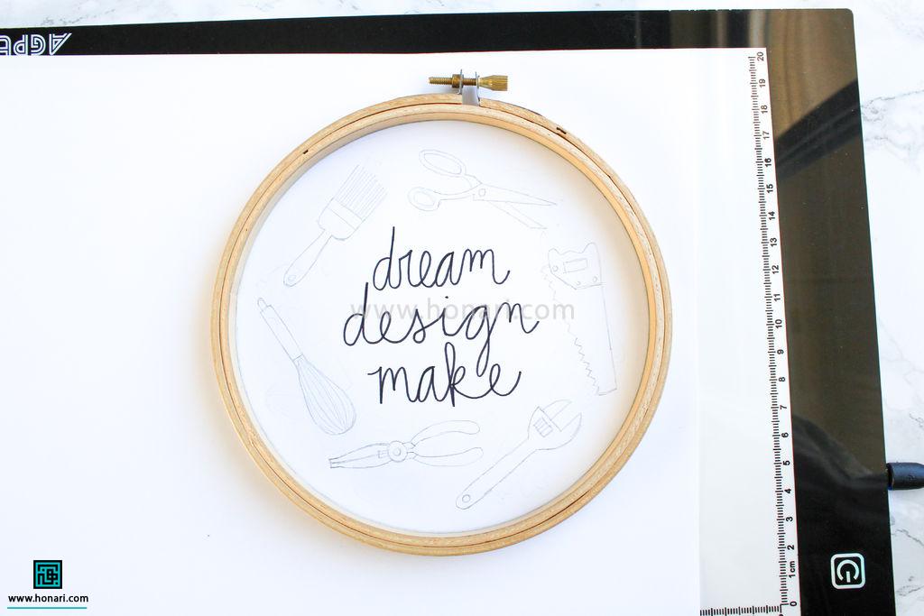 برای کشیدن طرح گلدوزی، می‌توانید از کارگاه یا خط‌کش کمک بگیرید.