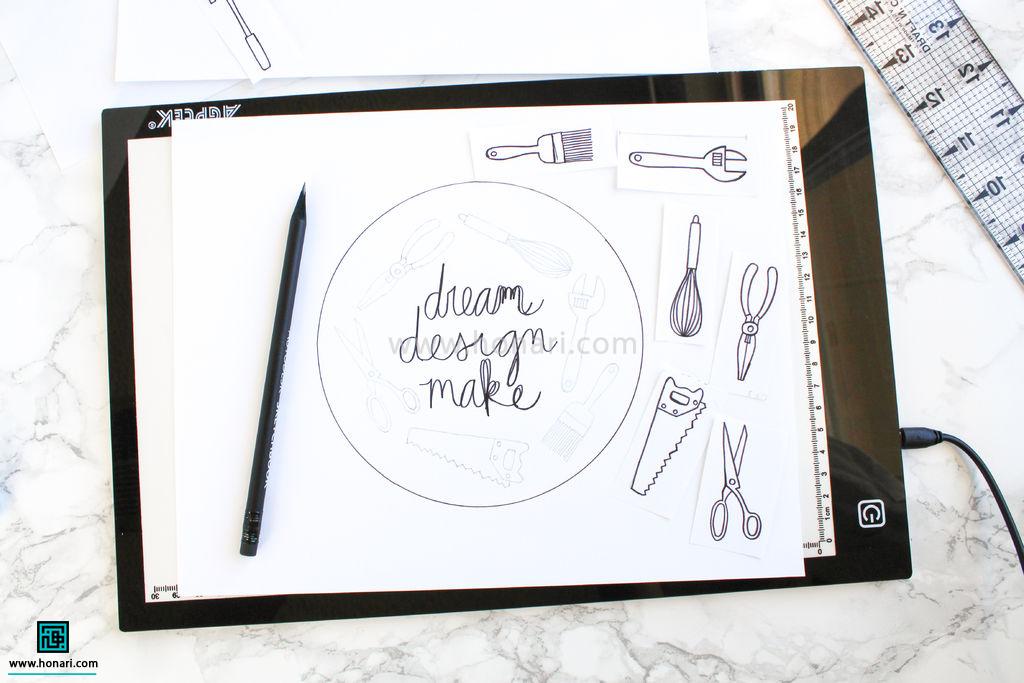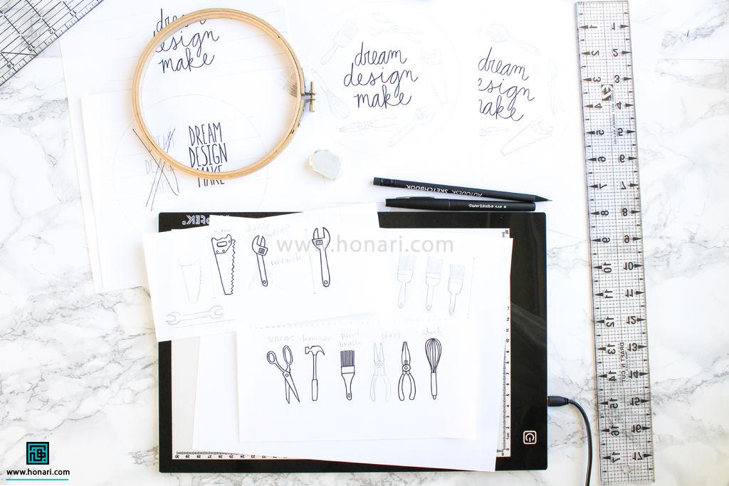 با کمک میز نور، طرح‌ها را به شکل مناسبی کنار هم بچینید.