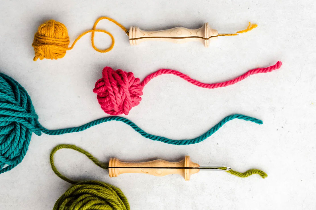 اما اگر طرح سادهای دارید، برجستگی برایتان مهم است، یا میخواهید سطحی مثل کوسن یا دیوارکوب را کامل بپوشانید و از کاموای متوسط یا ضخیم استفاده کنید، سوزنهای دستهچوبی و ضخیم گزینه بهتری هستند. این سوزنها گرههای درشتتر و چشمنوازتری ایجاد میکنند و برای کار روی سطحهای بزرگ، سرعت بیشتری به شما میدهند.