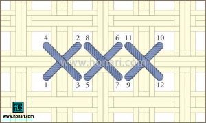 روش کار به این صورت است که سوزن در یک مسیر رفت و سپس در مسیر برگشت حرکت میکند. در پایان، طرح نهایی به شکل علامت ضربدر درمیآید.