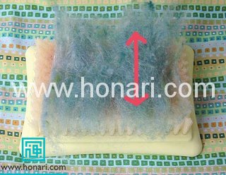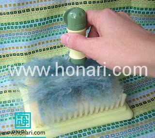 ابتدا مقداری پشم سیلا را به صورت یکدست و در یک جهت، روی برس کچّه پخش کنید.